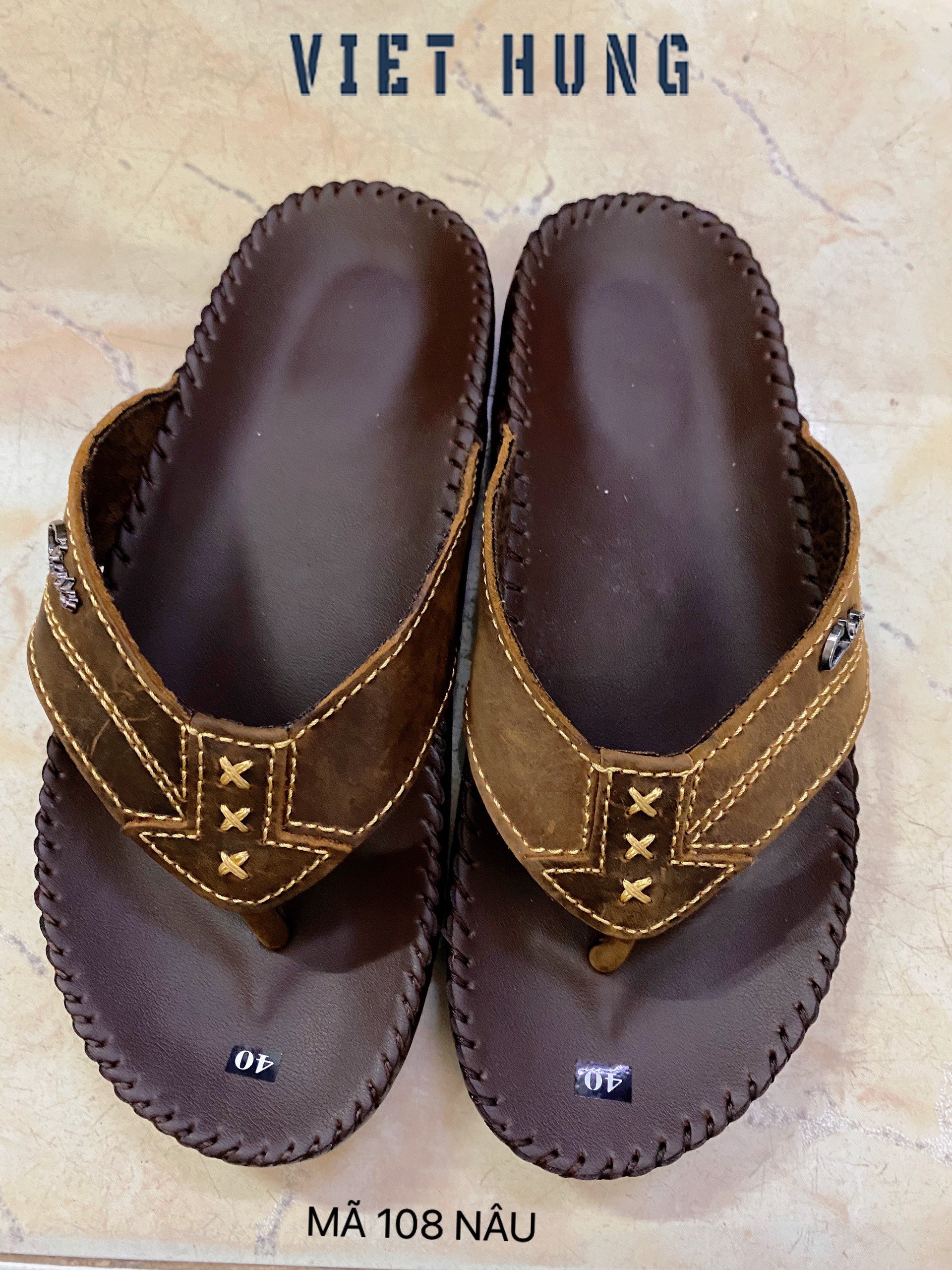 Dép nam da bò thật - Dép thời trang nam xỏ ngón đế cao su chống trơn trượt Mã 108 màu nâu hiện đại: