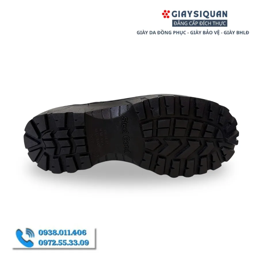 Đế giày được làm từ cao su tự nhiên, cấu trúc rãnh sâu chống trơn trượt và chống đâm xuyên từ vật nhọn như đinh, sắt thép. Bên cạnh đó, phần đế có khả năng chịu nhiệt lên đến 150°C, giúp giày hoạt động tốt trong môi trường có nhiệt độ cao.