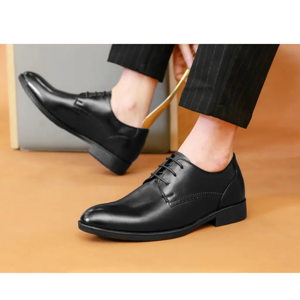 Giày tây công sở tăng chiều cao da bò cao cấp GC02 Đen