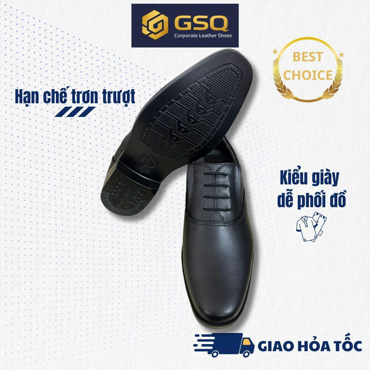 Form giày chuẩn, kiểu dáng giày tây nam buộc dây cải tiến (giả cột dây tiện lợi), mang lại vẻ ngoài: