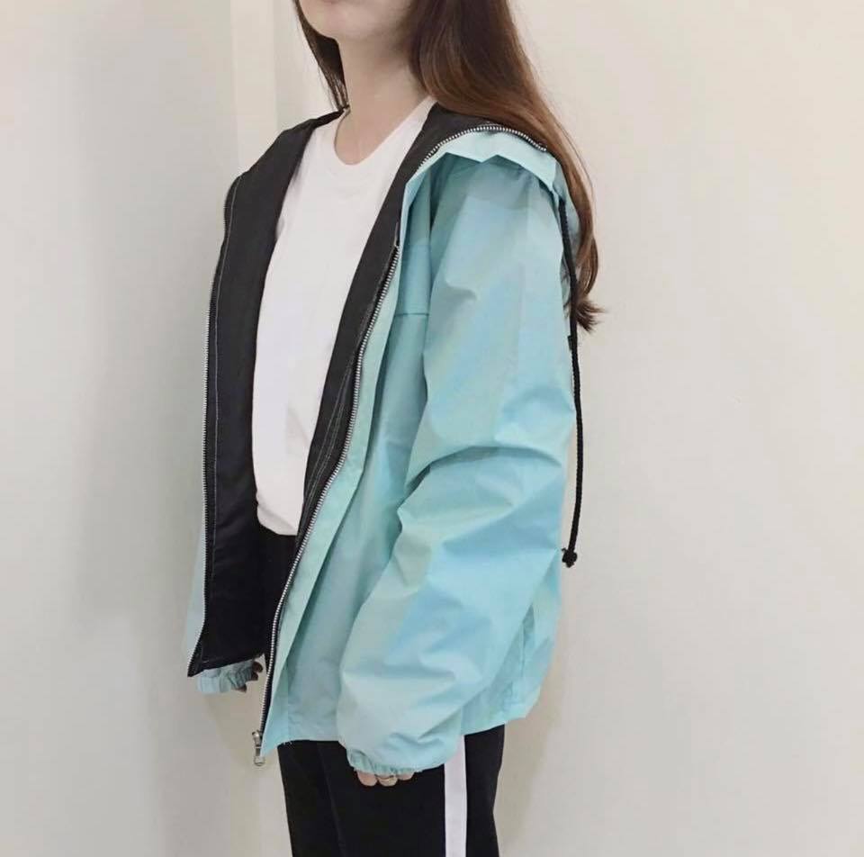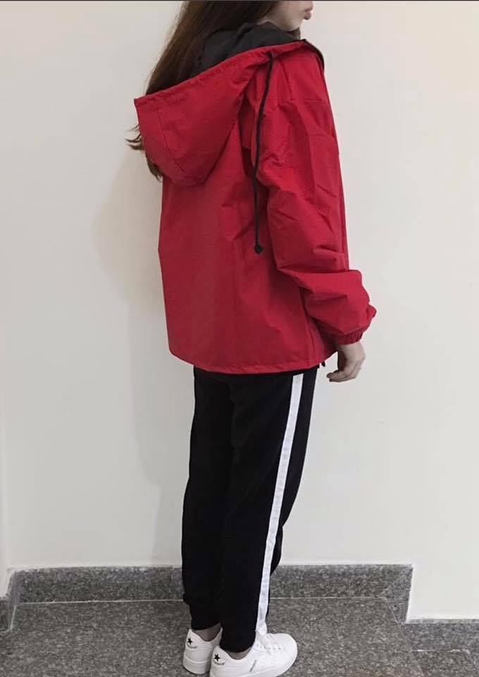 Chất liệu: vải dù, 2 lớp, mặc mát, có thể mặc đi mưa nhẹ.