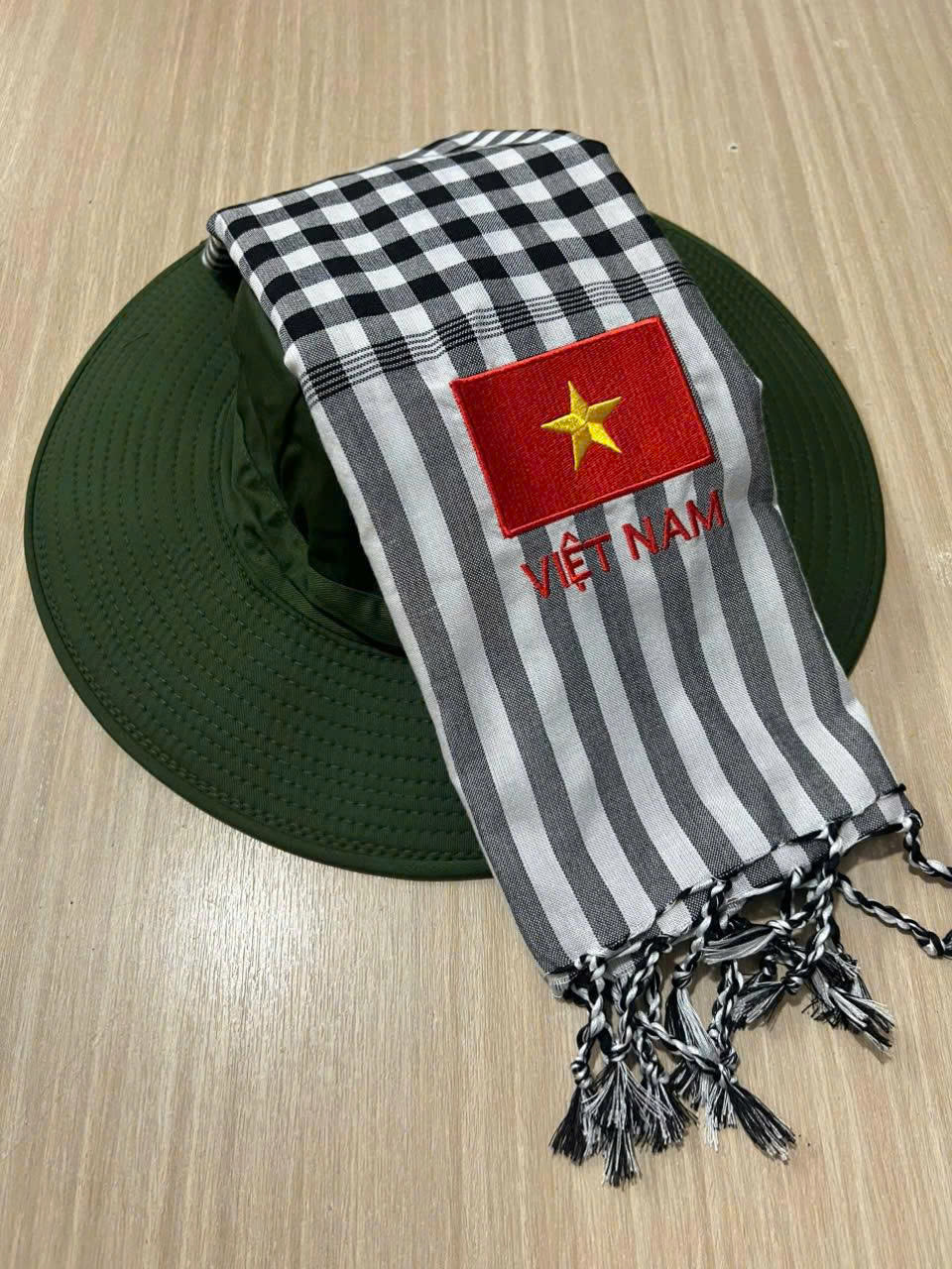 Khăn rằn nam bộ là một sản phẩm không thể thiếu trong các chuyến đi chơi dã ngoại. Với kích thước lớn 160*60, khăn rằn nam bộ giúp che chắn cơ thể khỏi ánh nắng mặt trời và gió lạnh. Đặc biệt, khăn rằn nam bộ được thêu cờ tổ quốc, giúp tăng thêm tính thẩm mỹ và thể hiện tình yêu với quê hương đất nước Việt Nam