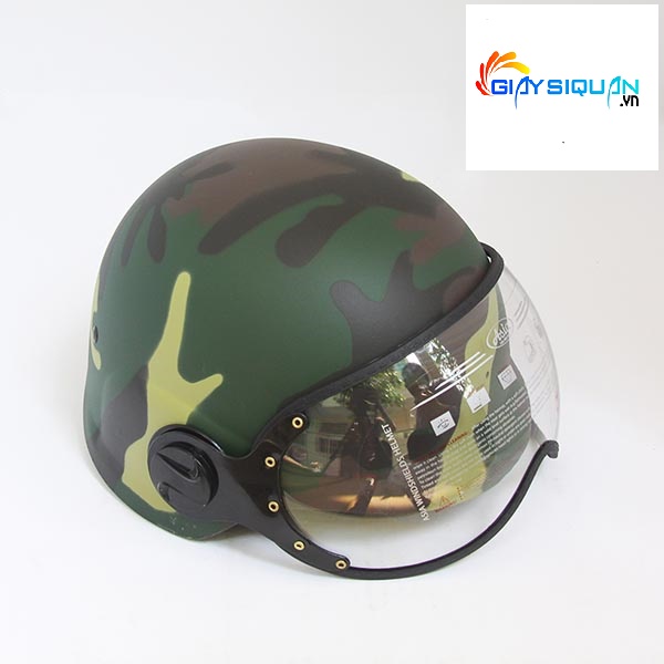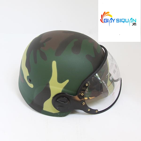 - Mũ làm bằng nhựa nhựa cứng, mút xốp dày, có kính chống bụi