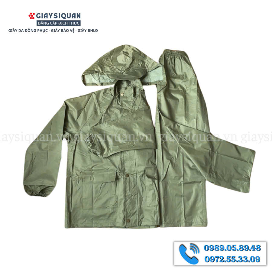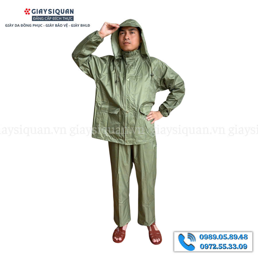 Bộ áo mưa Công Ty 26 màu cỏ úa mặt trước, chất liệu chống thấm nước, bền đẹp